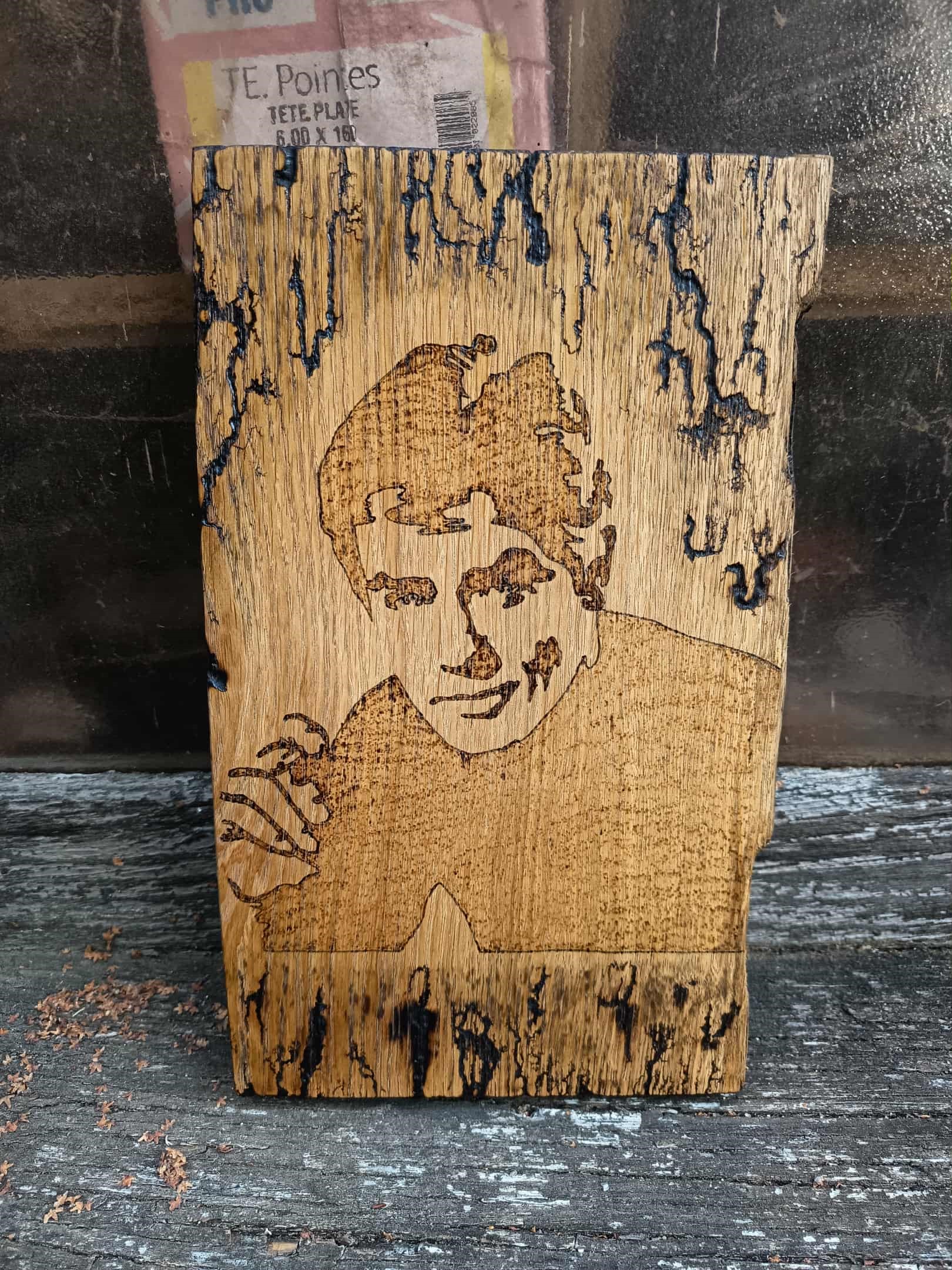 Planche décorative en fractale et dessin au pyrograveur ,support en chêne vernis